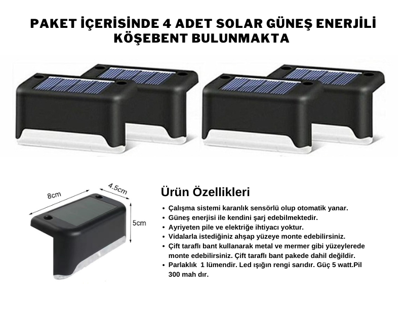 4 Adet GÜNEŞ ENERJİLİ LED AYDINLATMA SETİ -